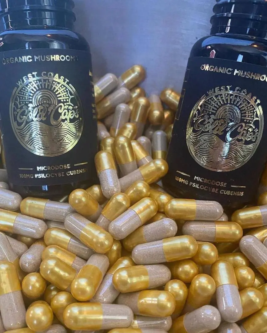 This species is the largest of all psilocybes, with an equally robust rhizomorphic mycelium. Typically, the caps of the mushroom are maroon to golden, sometimes with a white ring around the outside of the cap, which is why it was nicknamed the gold cap mushroom. Other common names for this mushroom include cubes, cubies, shrooms, magic mushrooms, boomers, and gold tops. This is usually the first psychedelic mushroom people encounter, and due to its ease of cultivation indoors, it is the most commonly available.